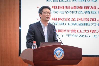 中国电力科学研究院高压所陈江波技术总监以《新型配电网供电可靠性综合提升技术》为题作报告,从运维检修、配电设备、故障自愈和网络形态四个关键层面分析目前技术存在的问题及解决思路,详细介绍了世界上规模最大的真型配电网实验平台一期、二期的建设成效和三期的建设规划。