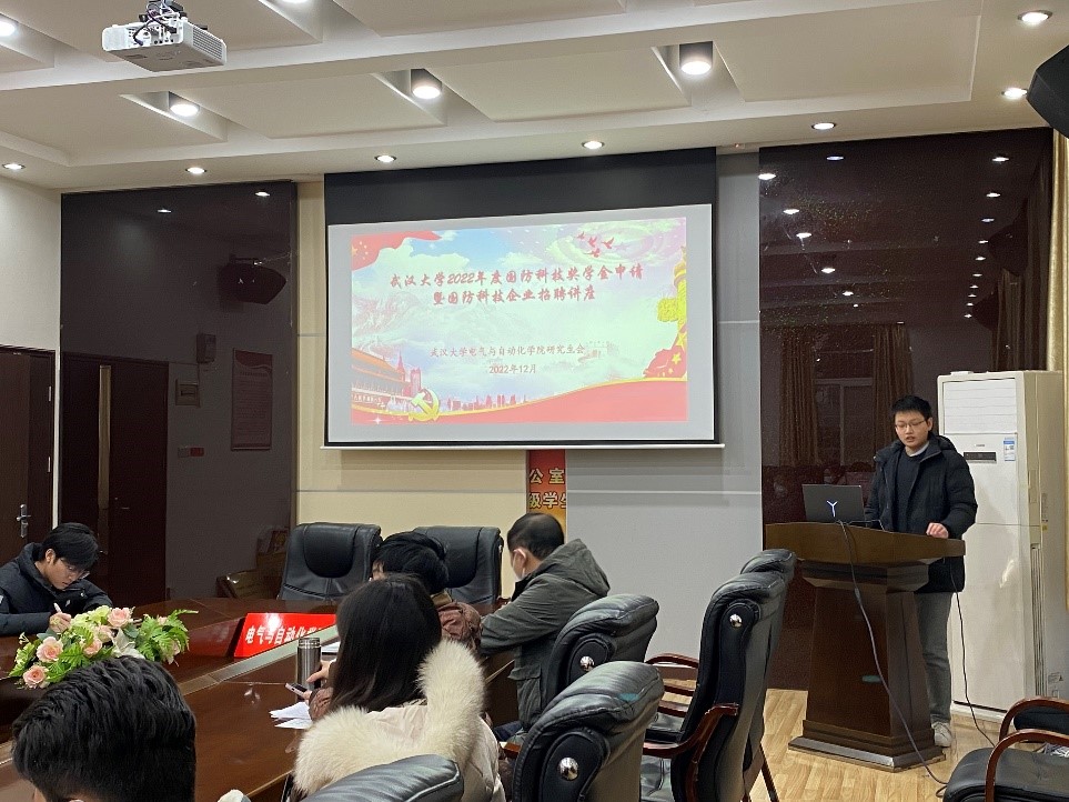 2022年12月9日下午15:00,3118云顶集团官网2022年度国防科技奖学金申请暨国防科技企业招聘讲座在三教第四会议室顺利举行!3118云顶集团官网党委副书记孟威、3118云顶集团官网党委学生工作部郑军老师、3118云顶集团官网兼职辅导员刘运鑫老师出席了本次会议。本次招聘讲座吸引到了众多同学前来参加,在倾听与交流中拓宽了对于国防科技奖学金申请以及投身国防事业的了解。