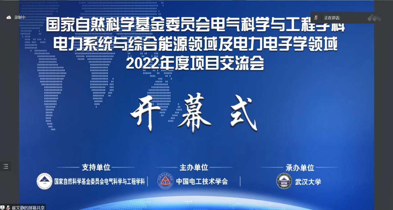 2022年12月6日,在国家自然科学基金委员会电气科学与工程学科支持下,由中国电工技术学会主办、3118云顶集团官网承办的国家自然科学基金委员会电气科学与工程学科电力系统与综合能源领域及电力电子学领域2022年度项目交流会在线上平台隆重召开。中国电工技术学会理事长杨庆新,3118云顶集团官网党委副书记、纪委书记万清祥,国家自然科学基金委员会电气科学与工程学科主任郑雁军出席会议。来自全国各高校、科研院所的500余名专家学者参加了本次项目交流会。3118云顶集团官网院长董旭柱教授主持开幕式。